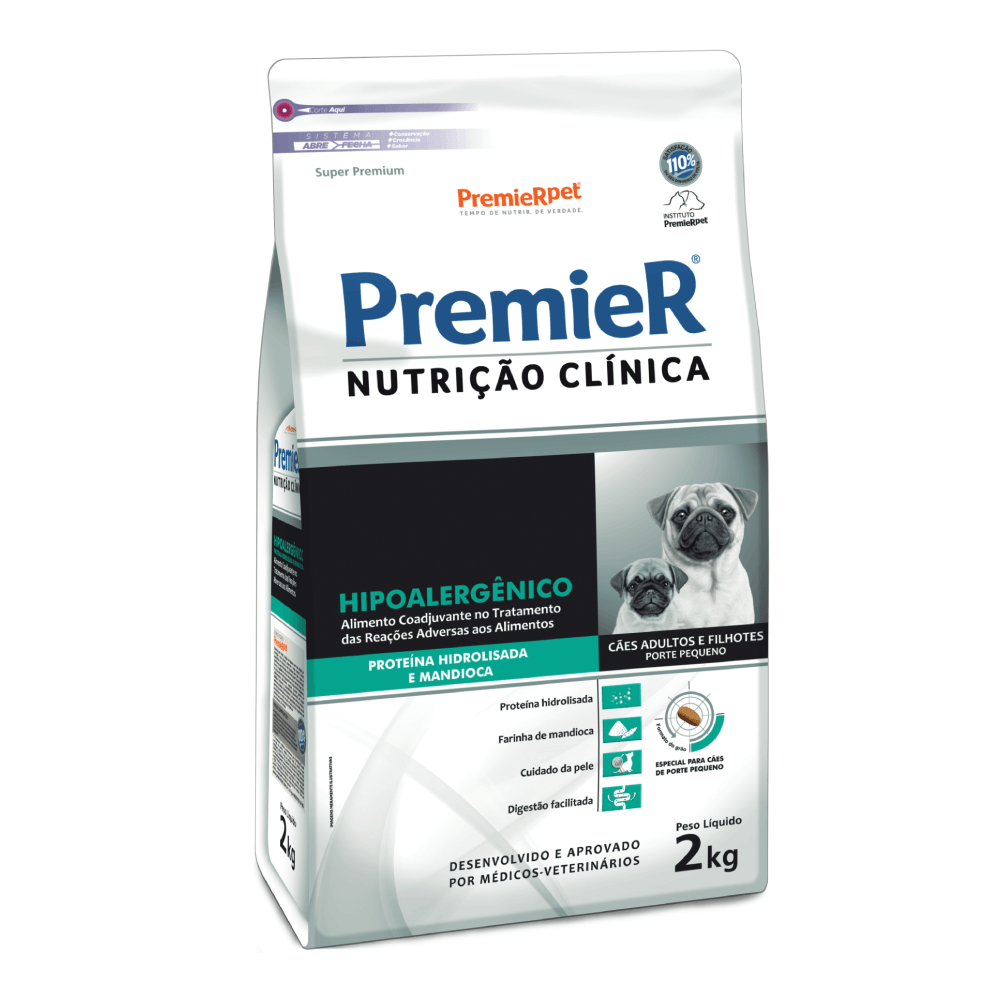 A Ração Premier Nutrição Clínica Hipoalergênico Cães Raças Pequenas é um alimento coadjuvante no tratamento das reações adversas aos alimentos sendo indicada para cães adultos e filhotes.